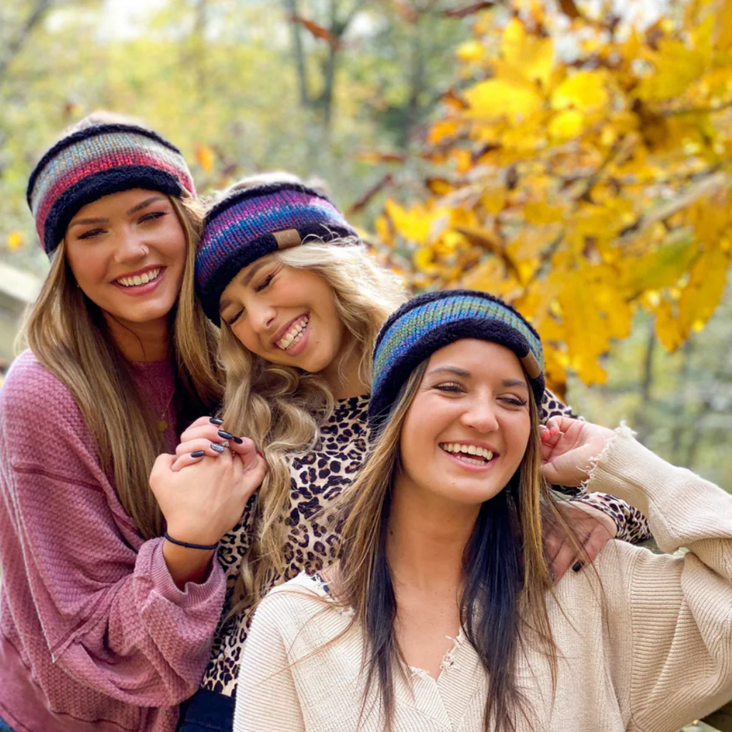 Meet your new favorite accessory—a headwrap that's as fun to wear as it is comfortable. The gorgeous ombre yarn creates a mesmerizing color transition, while the ultra-plush sherpa lining keeps things cozy all day long.