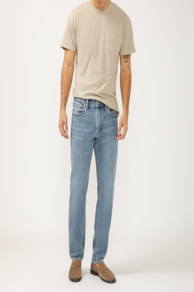 Sleek and streamlined from hip to ankle, our Desk to Dinner Konrad jean will have you dressed to impress from 9-5 and 5-9. This straighter slim fit jean hangs low on the waist and features a slightly roomier slim fit through the hip and thigh. Finished with a classic, everyday slim leg opening.