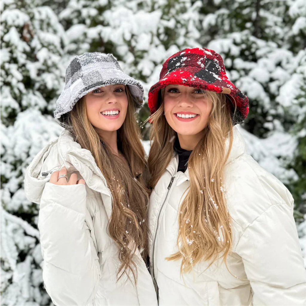 Our C.C Checkered Pattern Bucket Hat in Gray/Black will have you staying warm and stylish all season longFeaturing a checkered-pattern with cozy faux shearling fur. One size fits all - perfect for any fashionista.