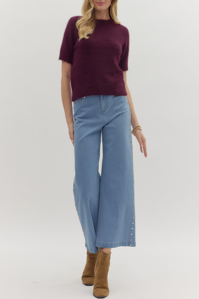 Wrap yourself in warmth and fun with our Collecting Memories Fuzzy Sweater Top! This short-sleeve knit offers a soft, fuzzy texture in a vibrant wine shade. Lightweight and unlined, it’s a charming choice for casual days that need a cozy twist.