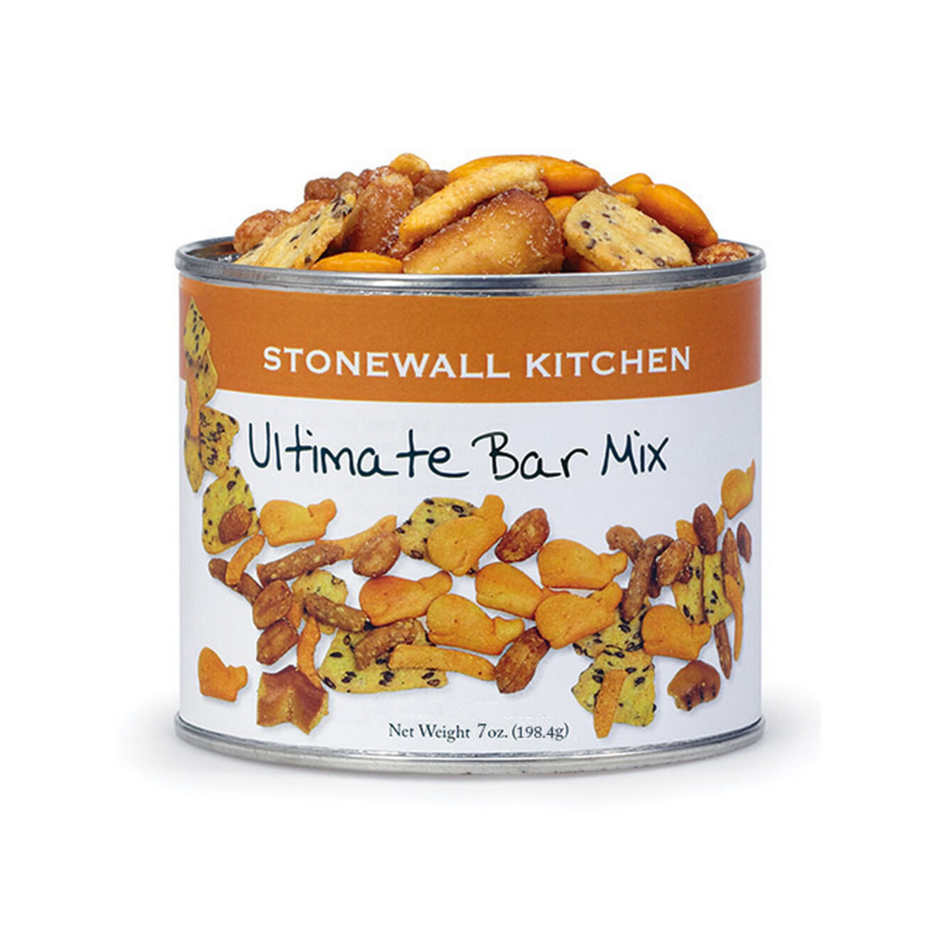 Our Stonewall Kitchen Ultimate Bar Mix is great for a home bar or just having on hand for when friends stop by. A sweet and salty mingling of everyone's favorite snacks - honey roasted peanuts, cheddar crackers, salted corn chips, honey mustard pretzels, sesame sticks and chili lemon sticks. Truly the ultimate mix for any time snacking or parties.