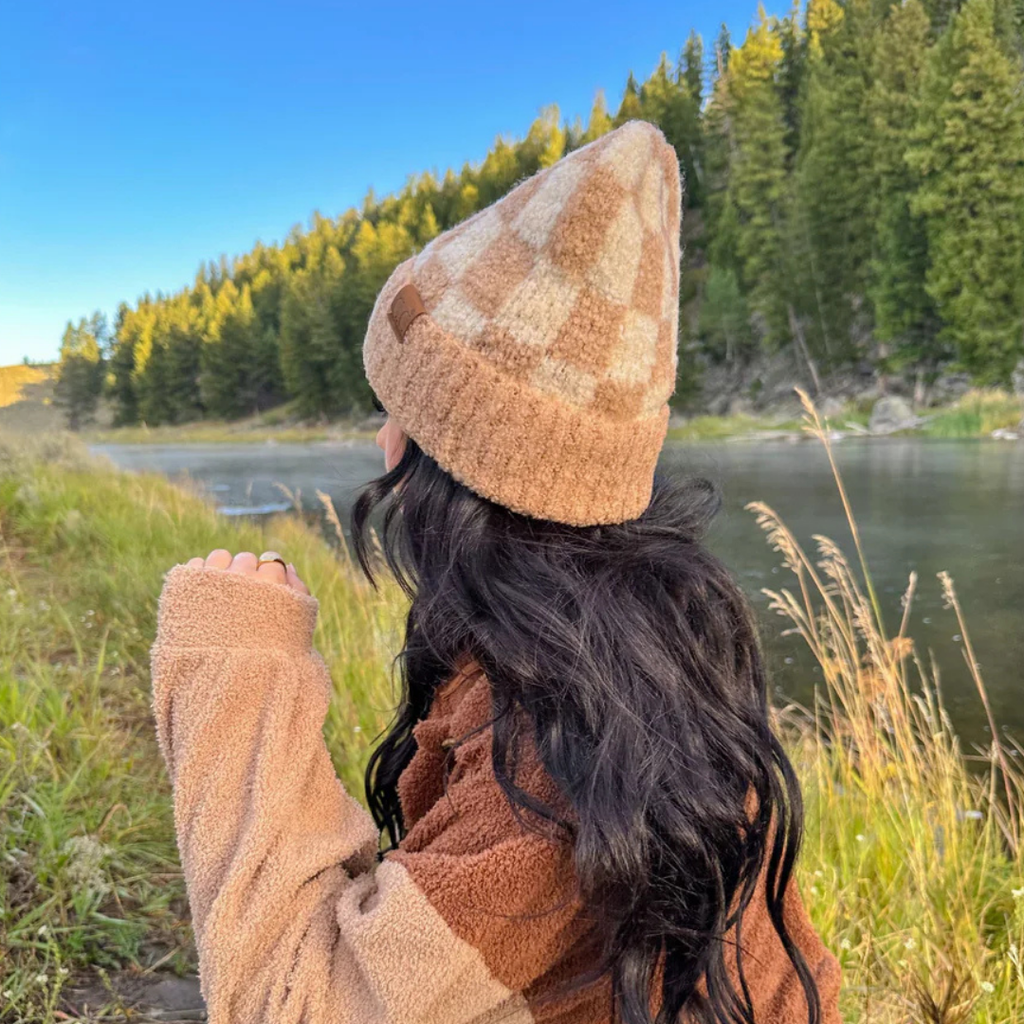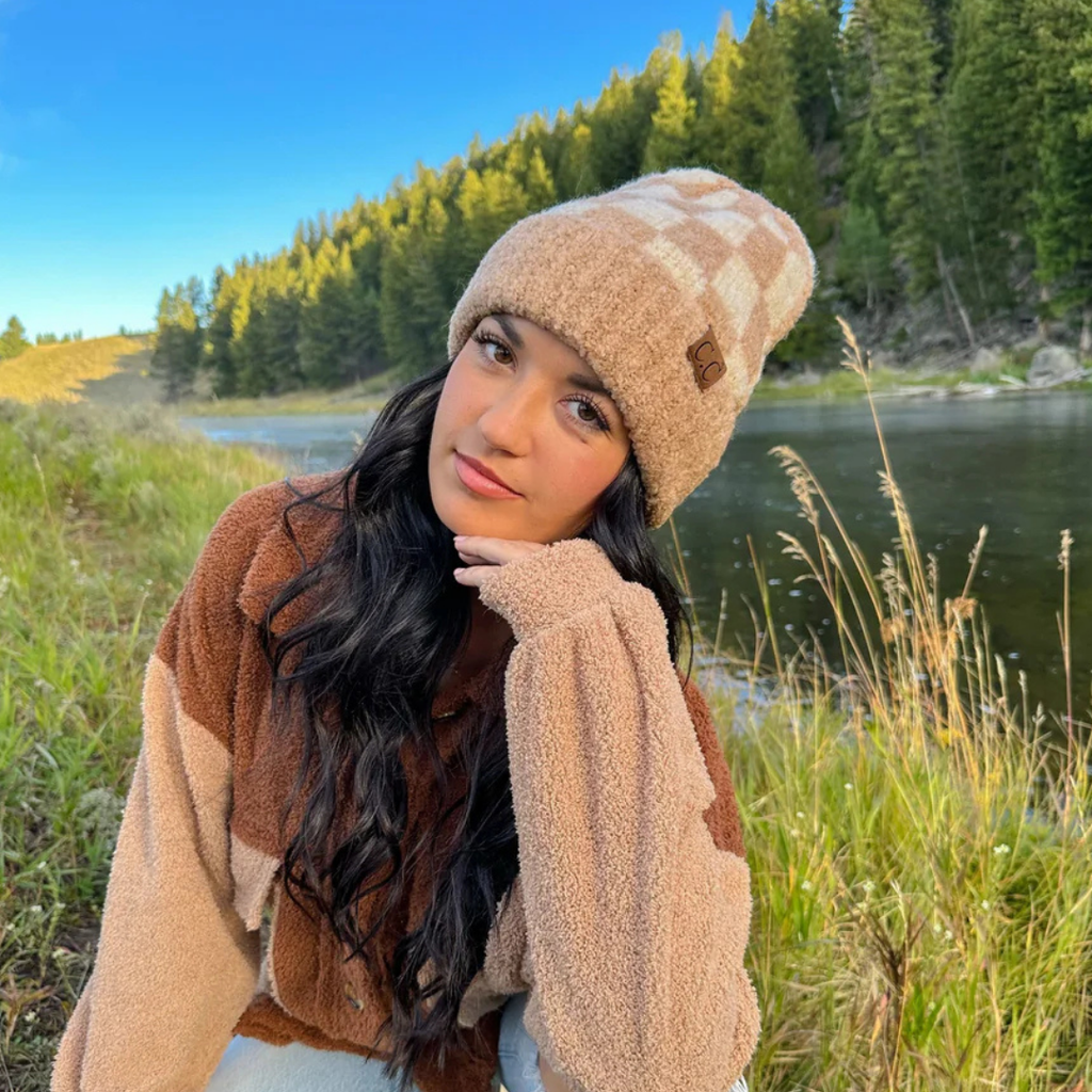 Get cozy with our charming C.C Boucle Checkered Pattern Beanie that brings a fun checkered twist to your winter look. Wrapped in irresistibly soft boucle fabric, it's the perfect companion for chilly days when you want to stay warm without sacrificing style. Whether you're hitting the slopes or grabbing coffee with friends, this playful pattern keeps your vibe fresh and your head toasty.