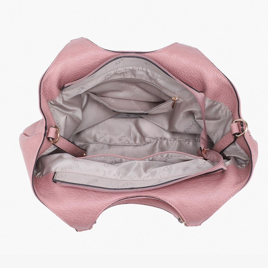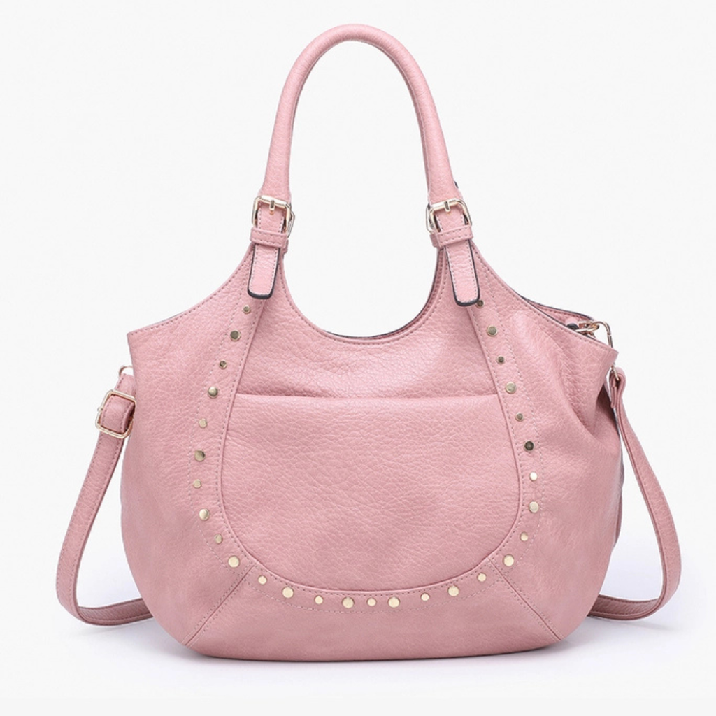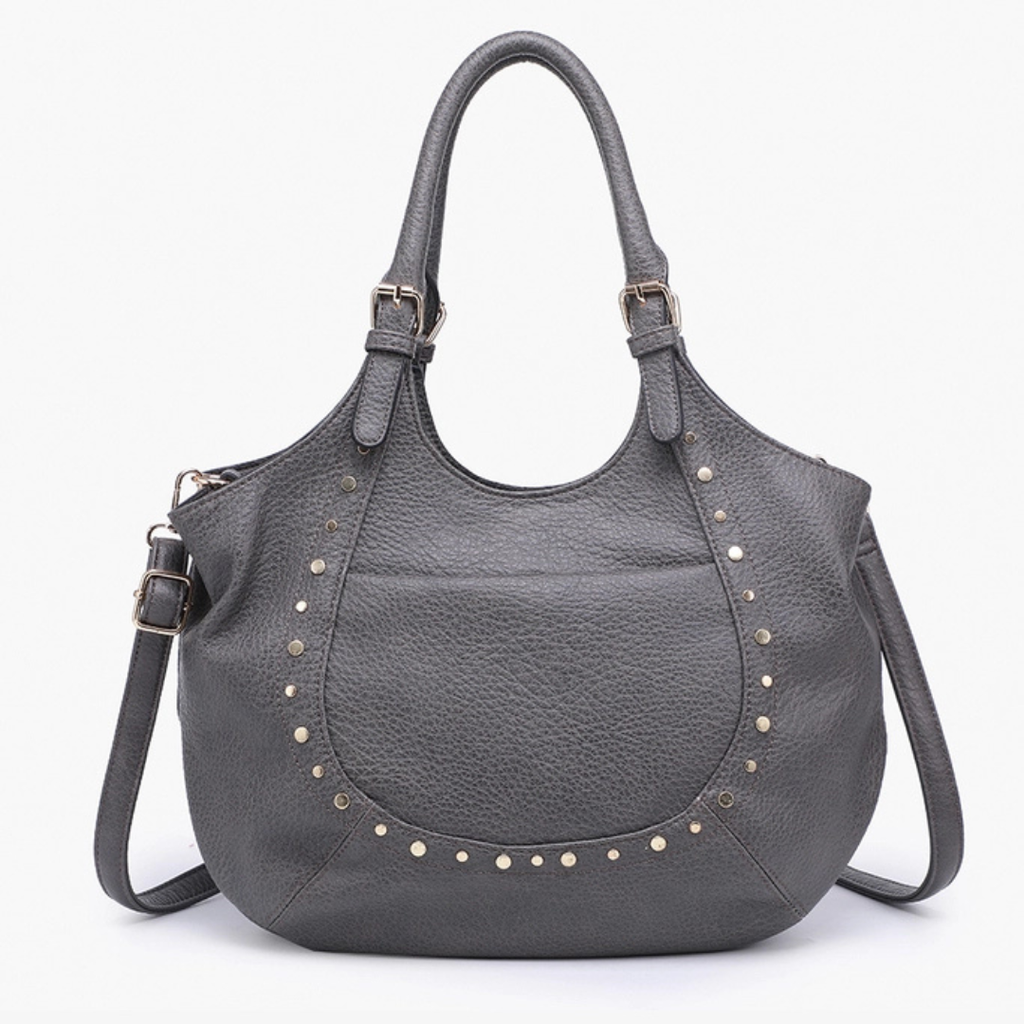 Our Kay Studded Hobo is your answer to effortless style meets smart organization. Featuring studded accents, dual handles with buckle details, multiple pockets, and shoulder/crossbody adjustable strap. Lined and made from vegan materials, this spacious hobo is the perfect partner for your on-the-go lifestyle.