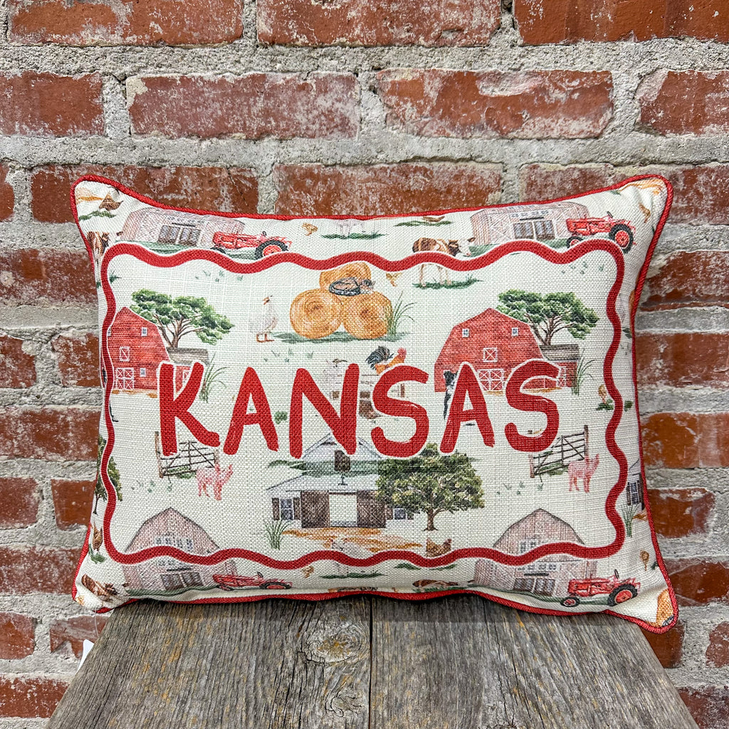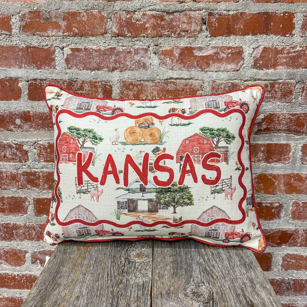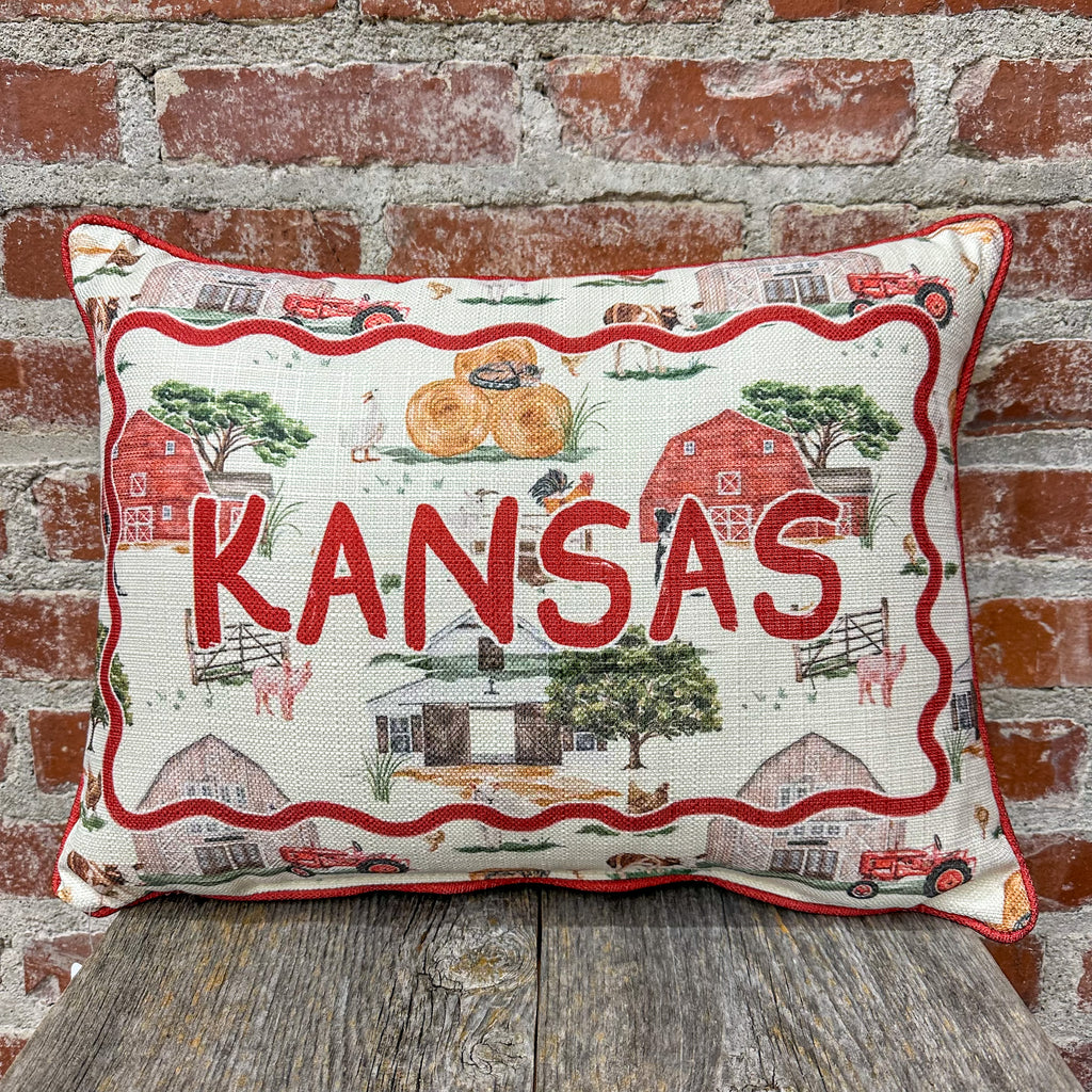 Bring rustic charm to any space with our delightful Kansas Farm Pattern Lumbar Pillow. Wrapped in soft, durable polyester and trimmed with vibrant red piping, it's as cozy as it is eye-catching. Generously filled with poly-fill and securely sewn, this pillow is built to last. The design is digitally infused directly into the fabric, so your farm-fresh aesthetic stays bright and beautiful—no fading, peeling, or cracking to worry about.