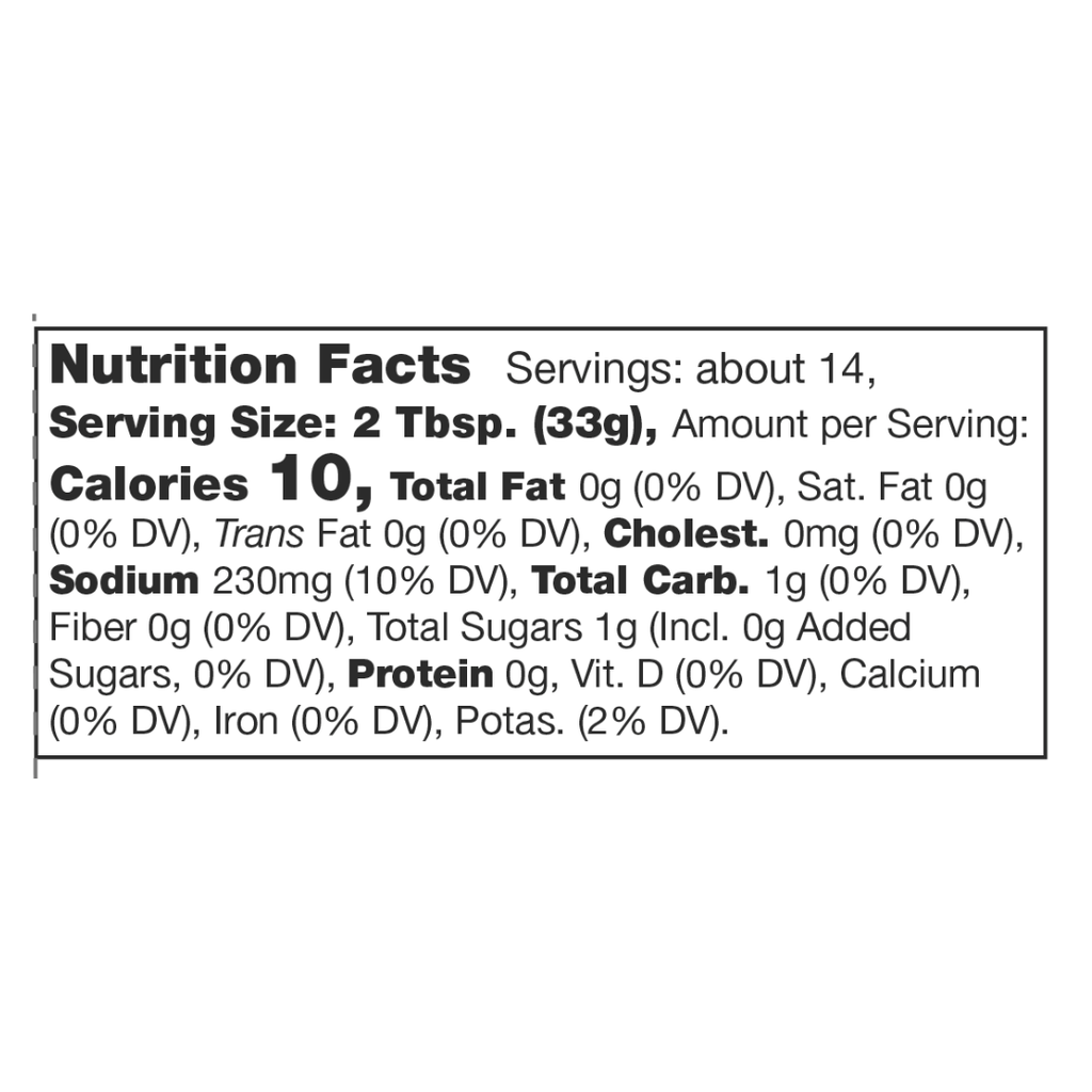 - Ingredients: Diced Tomatoes (diced tomatoes, tomato juice, citric acid), Dill Relish (cucumbers, vinegar, salt, stabilizer [xanthan gum, guar gum, locust bean gum, dextrose], alum, turmeric, spice, preservative [1/10th of 1% sodium benzoate], emulsifier [polysorbate 80]), Distilled Vinegar, Lime Juice (water, lime juice concentrate, natural flavors), Onion, Jalapeño Peppers, Garlic, Cilantro, Salt