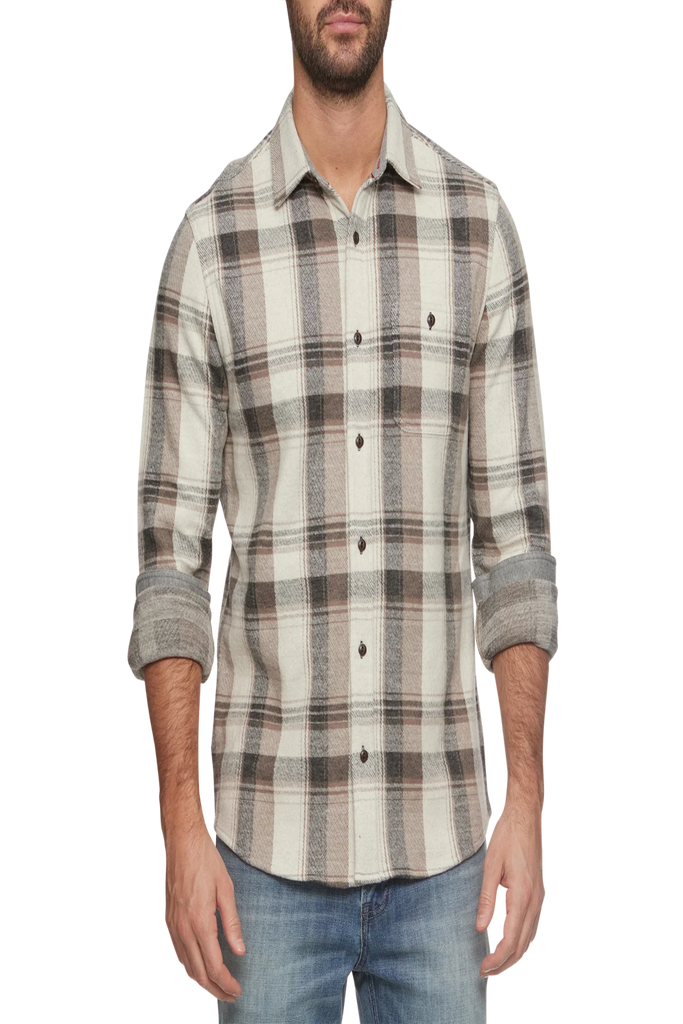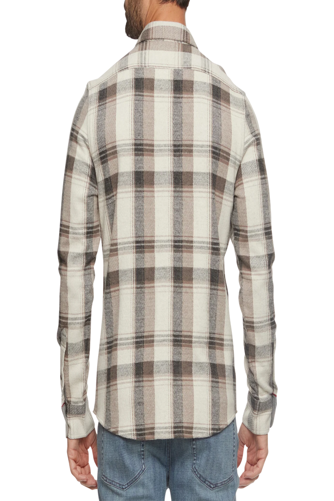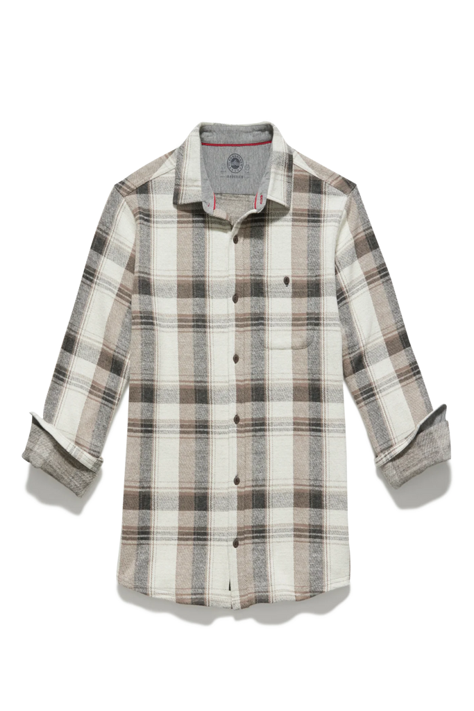 With a blend of extremely soft and stretchy knit performance fabric, you’ll find yourself reaching for this fall favorite all season long. Layer over your favorite tees, or on its own– this endlessly versatile flannel can be worn anytime, anywhere. Contrast fabric inside collar stand, back yoke, front placket, and sleeve cuffs. Single front chest pocket; button closures. Looks like a button-down; feels like a sweatshirt.