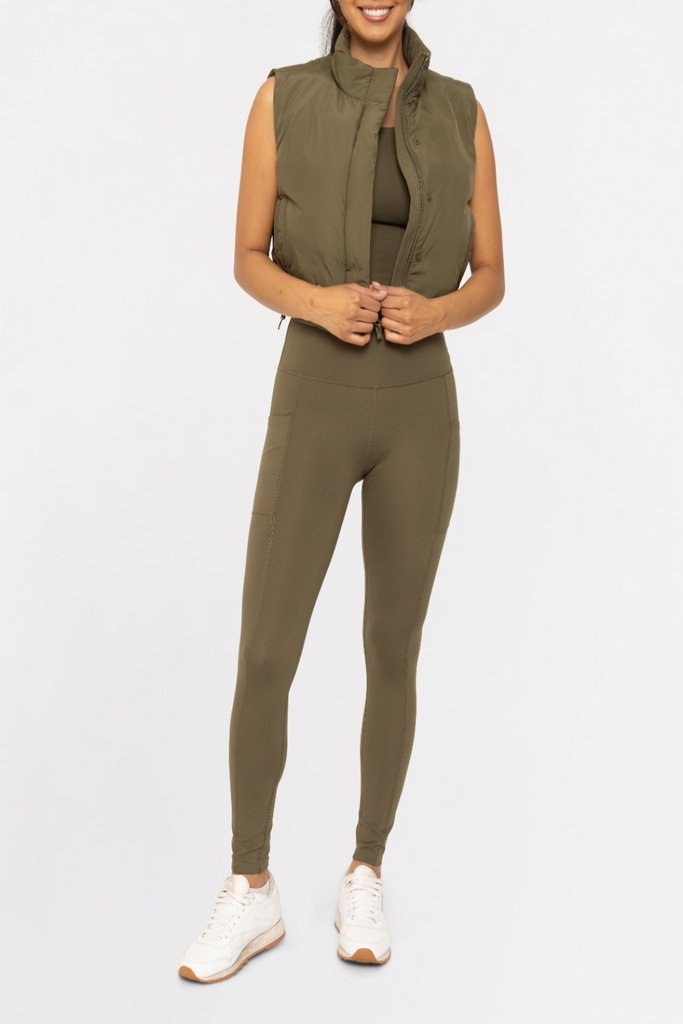 Our Trek Cropped Puffer Vest is your go-to for effortless layering that actually keeps you warm. Sleeveless and streamlined, it boasts a protective high neckline and a dual-closure system—zipper meets snap buttons—so you can adjust your coverage on the fly. Side pockets stash your essentials, while adjustable cinch cords at the sides let you customize the fit to perfection. Moisture-wicking fabric keeps you dry and comfy through all your adventures. True to size and ready to become a wardrobe staple.