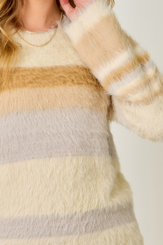 - Fuzzy Color Block Stripe Sweater