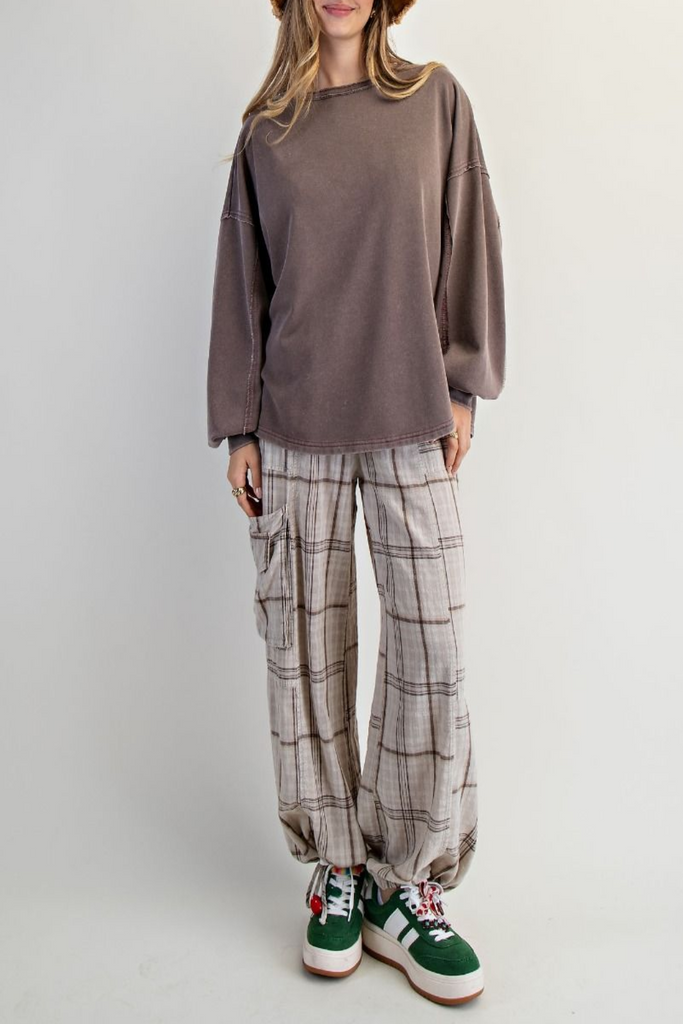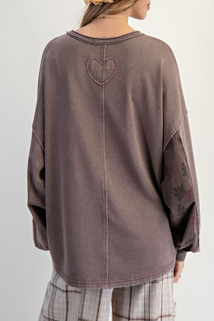 Let your playful nature shine with our Floral Panel Pullover Top! Featuring a crew neckline, long dolman sleeves, and drop shoulder detail. The floral and plaid contrast fabric panels add a quirky twist, while the small heart patch on the back adds a touch of whimsy. The mineral washed finish, the oversized/relaxed fit will keep you comfortable all day long.