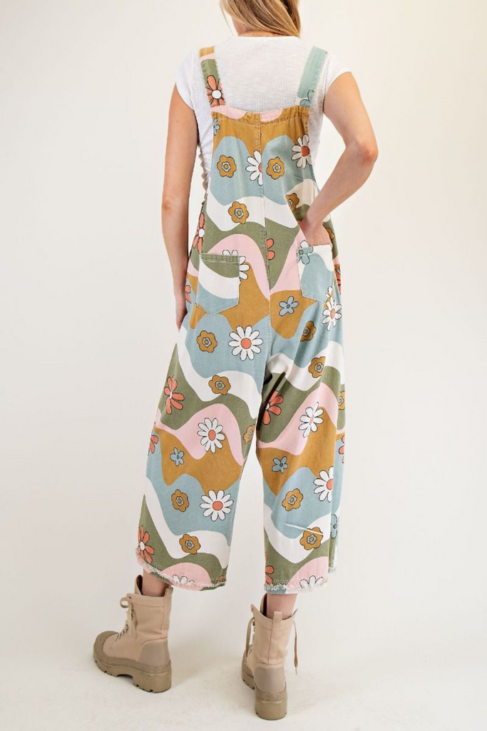 Ripples Flower Print Overalls