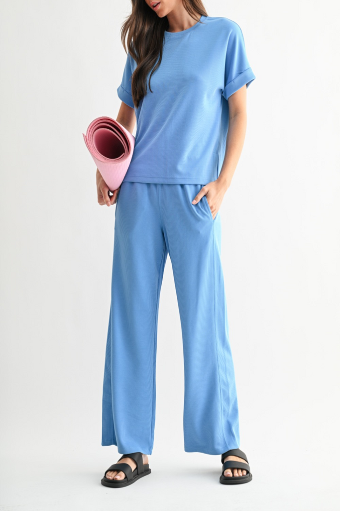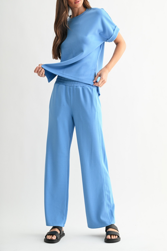 Flowy, flattering, and effortlessly chic—our Iconic Luxe Sand Wash Rib Wide Leg Pants are your go-to for elevated comfort. Crafted from buttery-soft, sand-washed rib fabric, these pants offer a rich texture with depth and dimension. The elastic waistband ensures a perfect fit, while the side seam paneling creates a long, elongated silhouette. Designed for versatility.