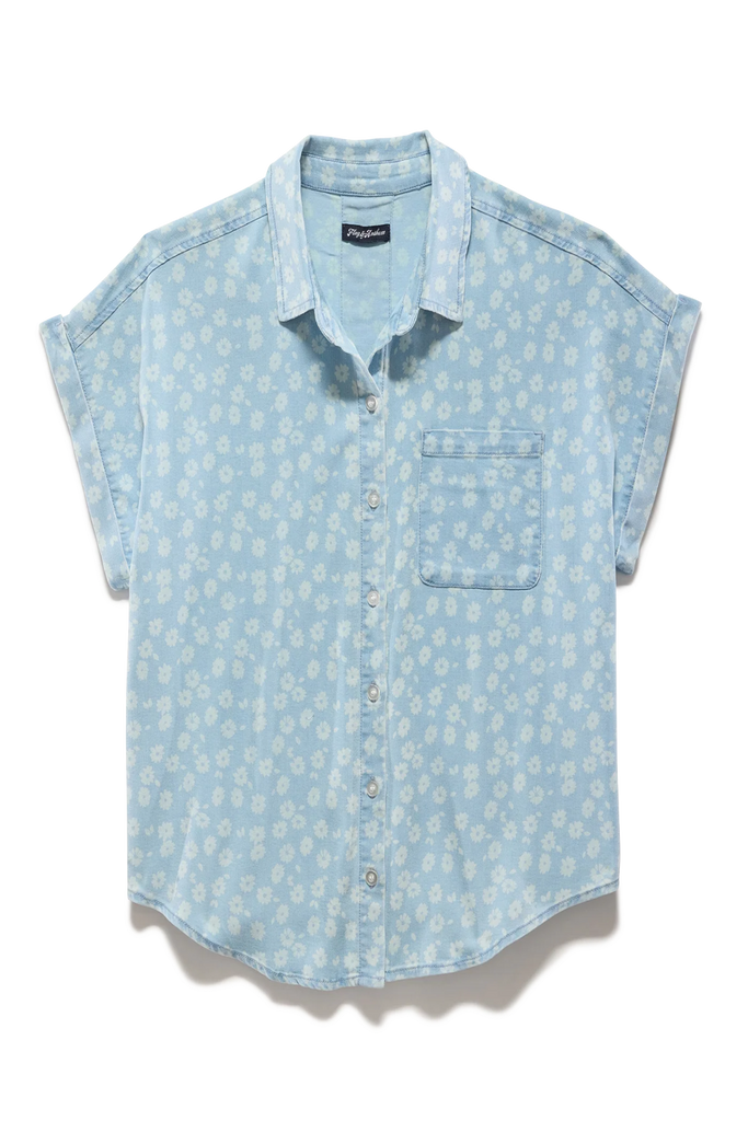 Our Flag & Anthem Siena Bleach Print Dolman Shirt is all about having a little fun! Featuring a lightweight super soft fabric shapes a collared neckline and short dolman sleeves with folded cuffs. Functional front button placket and single patch pocket accent the relaxed body, which ends at a rounded high low hem.